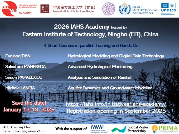 Please save the date for the IAHS Academy which will be held at the Eastern Institute of Technology in Ningbo, China from 12 - 18 January 2026. IAHS Academy application deadline is 15 October 2025. More information and the IAHS Academy application details can be found here.